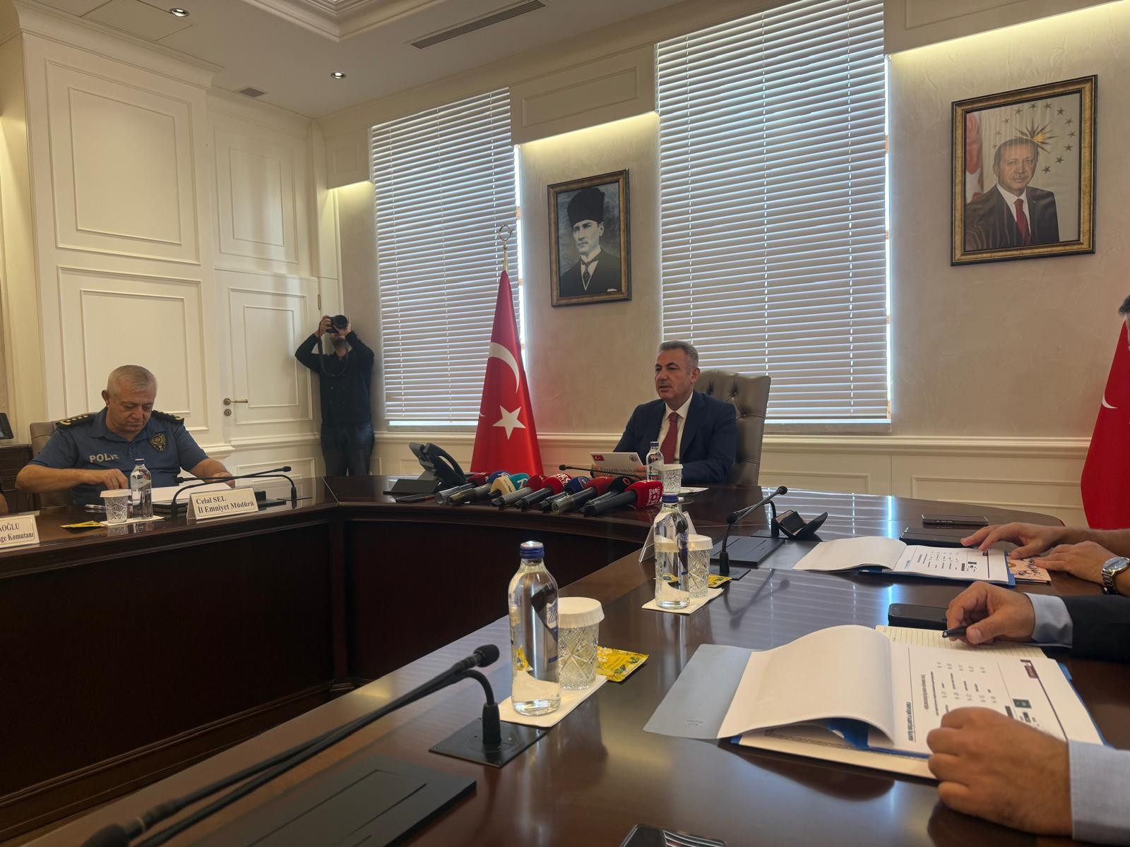 ŞİLAN KOCADAĞ/EGEPOSTASI- İzmir Valisi Dr. Süleyman Elban, beraberindeki kolluk kuvveti amirleri ile birlikte Valilik Toplantı Salonu’nda, kentte gerçekleştirilen güvenlik ve asayiş konularına ilişkin istatistiki verilerin de paylaşılacağı toplantıda basın mensuplarıyla bir araya geldi.