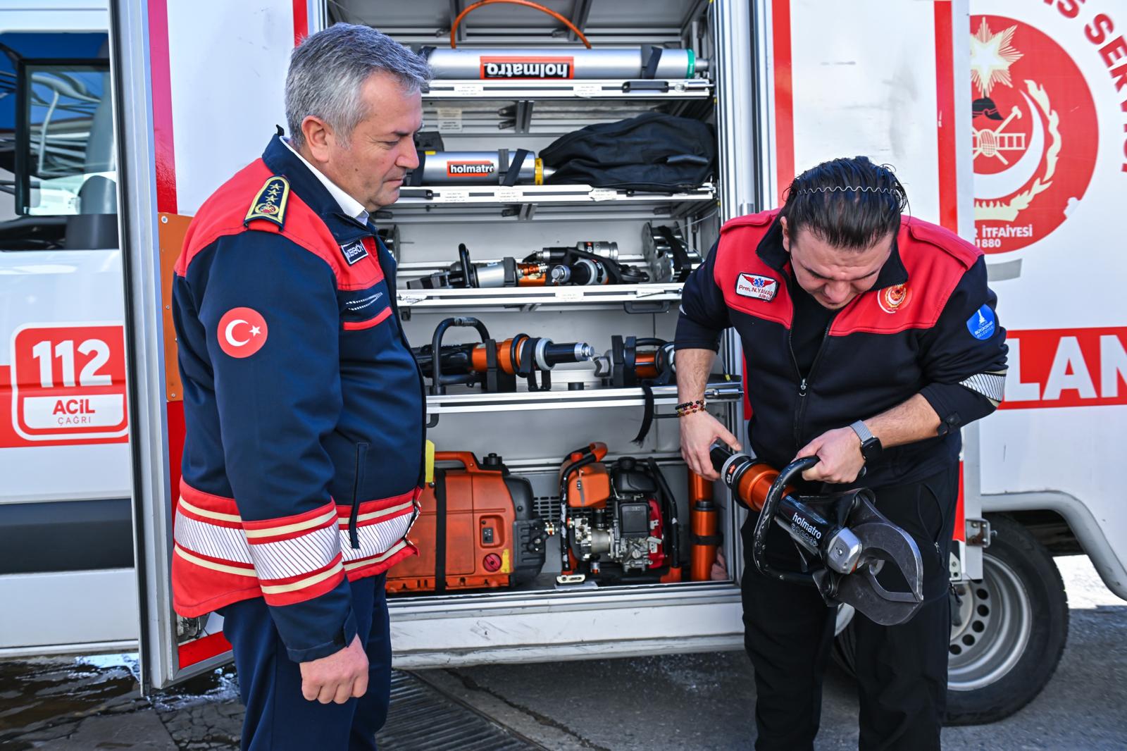 İzmir İtfaiyesi bünyesinde, büyük çaplı demirleri kesebilen ağır ekipmanlardan trafik kazalarında kullanılan pedal kesicilere, yüzük çıkarma işlemlerinde kullanılan mikro özel kesicilere kadar geniş bir kurtarma ekipmanı yelpazesi bulunuyor. Paramedikler, çevre güvenliğini sağlayarak kazazedeye zarar vermeden müdahaleyi titizlikle tamamlıyor.